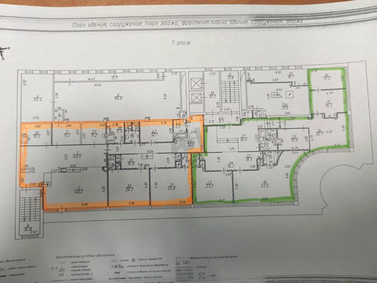 Лот №1003905 Предлагается к аренде офисное помещение в бизнес-центре класса B+. Объект расположен на седьмом этаже здания. Общая площадь помещения составляет 200.5 квадратных метра. ( На планировке зеленый цвет) Планировка смешанного типа, хороший ремонт. Для обеспечения комфортных условий работы в офисе функционирует централизованная система кондиционирования и приточно-вытяжная вентиляция. В здании имеется два лифта, организована служба охраны и пропускная система. Для данного блока возможна аренда 5 м/м, оплата отдельно в размере 30 000 рублей в месяц за 1 м/м. Метро Краснопресненская 6 минут пешком. Стоимость аренды: 55 000 руб/м2/год (918 959 руб. в месяц). В цену включено: эксплуатационные расходы. В цену не включено: затраты на электричество, коммунальные расходы, уборка.