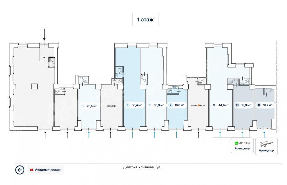 Лот №1021959 Продаются помещения свободного назначения в 5 мин. пешком от станции метро "Академическая". Интенсивный пешеходный трафик, первая линия, рядом расположены наземный пешеходный переход и остановка общественного транспорта. Отдельный вход с улицы, открытая планировка, витринное остекление, высота потолков 4.5 м. Возможное назначение: аптека, оптика, ортопедия, магазин, шоурум, продукты, кулинария, кафе, кофейня, студия красоты, банк, медцентр, услуги, салон связи, ремонт телефонов, цветы и другие виды коммерческого использования. Актуальные площади и цены (м2):