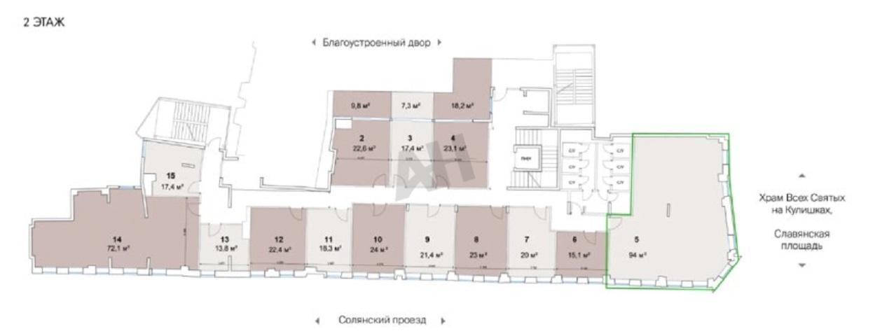 Лот №1035817 Предлагается к аренде помещение свободного назначения под клиентский офис общей площадью 94 м². Объект расположен на втором этаже, в пяти минутах ходьбы от станции метро «Китай-город». В помещении заведена мокрая точка, отделка отсутствует. Санузел находится на этаже, в непосредственной близости. Из окон открывается вид на Храм Всех Святых на Кулишках и Славянскую площадь. В здании организована круглосуточная система контроля доступа. Установлена сплит-система кондиционирования, вентиляция естественная. Система пожаротушения отсутствует. В шаговой доступности от здания расположены кафе, рестораны, салоны красоты, магазины косметики и парфюмерии, аптеки, стоматологические центры и банки. Стоимость аренды: 70 213 руб/м2/год (550 002 руб. в месяц). В цену включено: эксплуатационные расходы. В цену не включено: затраты на электричество, коммунальные расходы, уборка.
