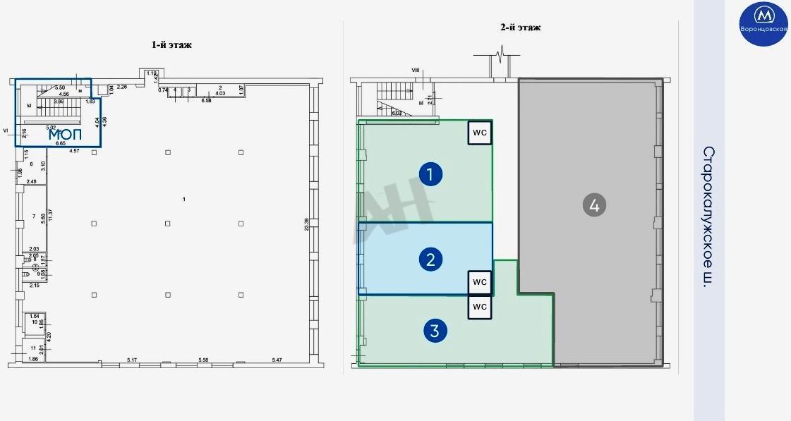 Лот №1074688 Продается помещение свободного назначения площадью 59.7 м2 на втором этаже нежилого здания. Объект расположен в прямой видимости от выхода из метро «Воронцовская». Помещение в настоящее время свободно, ведется процесс выделения в отдельный блок (блок № 2 на планировке). Помещение обладает следующими характеристиками: отдельный вход в блок на этаже, высота потолков 5,3 метра с возможностью организации антресоли, свободная планировка и большие окна. Коммуникации центральные, предусмотрена мокрая точка. Здание является частью бизнес-центра «ВАЛЛЕКС», расположенного напротив станции БКЛ метро «Воронцовская». Территория круглосуточно охраняется и оборудована пропускной системой. Для посетителей и арендаторов доступна парковка перед зданием. В здании представлена разнообразная инфраструктура, включая даркстор Ozon, сетевую кофейню, шоу-румы, офисы, медицинские и стоматологические клиники. Помещение оптимально подойдет для размещения шоу-рума, фотостудии, косметологии, медицинского кабинета, точки общественного питания, фитнес-центра, фулфилмента, офиса продаж, салона красоты или интернет-магазина.
