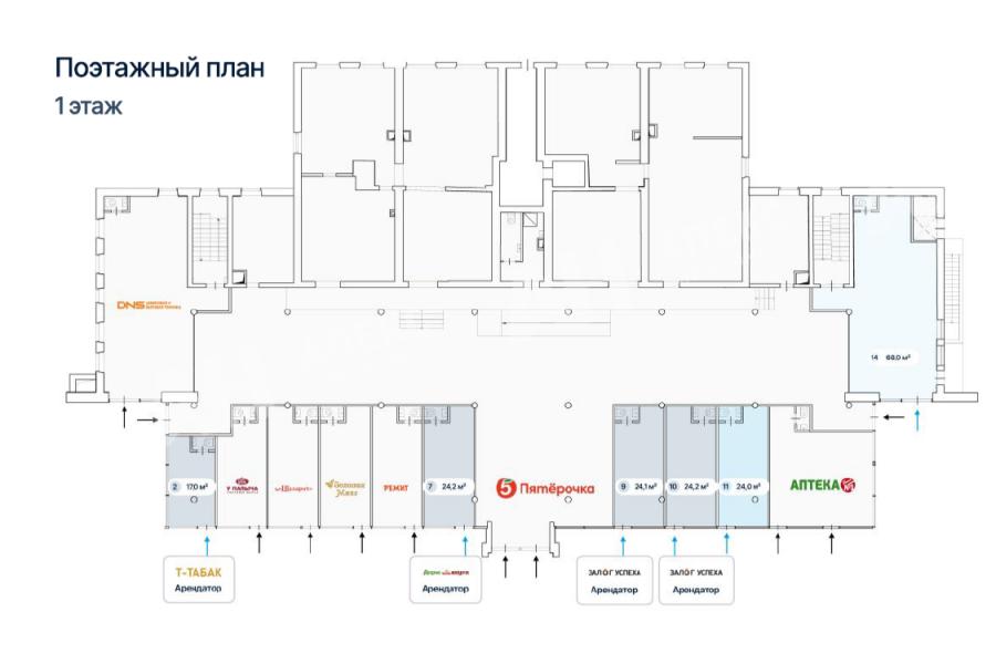 | Возможное использование: | Свободное назначение Аптеки Банки Бытовые услуги Кафе/рестораны Магазины Медцентры Нотариусы/турфирмы Салоны красоты Фотостудии Шоурумы | ||||||