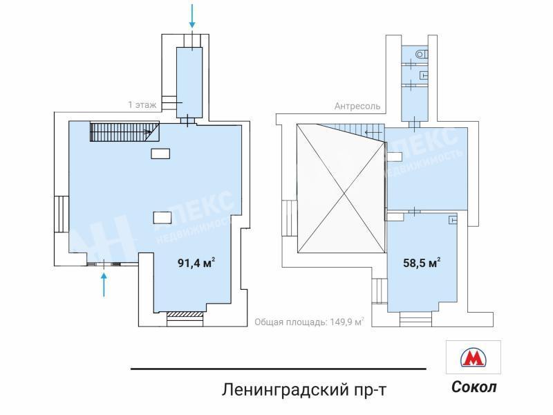 Лот №911571 Сдаётся в аренду помещение свободного назначения общей площадью 149.9 м2. Топовая локация: объект расположен всего в 50 метрах и в прямой видимости от станции метро «Сокол», на первой фасадной линии с интенсивным пешеходным трафиком. Помещение находится в крупном сложившемся жилом районе с высокой плотностью застройки и развитой инфраструктурой. В радиусе 10 минут ходьбы проживает более 24 500 жителей. В окружении расположены жилой комплекс «Соколиное гнездо», бизнес-центр «Алкон», торговый центр «Метромаркет» и ВУЗ «Университет Синергия». Помещение имеет открытую планировку и витринные окна, оборудовано двумя отдельными входами: с улицы и со стороны двора. Высота потолков от 2.3 до 4.9 метра, городские инженерные коммуникации. Пространство идеально подойдёт для размещения магазина, шоурума, бутика, ювелирного салона, кафе, кофейни, аптеки, салона красоты, медицинского центра, офиса продаж, банковского отделения, нотариальной конторы, оказания услуг населению или цветочного магазина. Стоимость аренды: 92 061 руб/м2/год (1 150 000 руб. в месяц). В цену не включено: затраты на электричество, коммунальные расходы, эксплуатационные расходы.