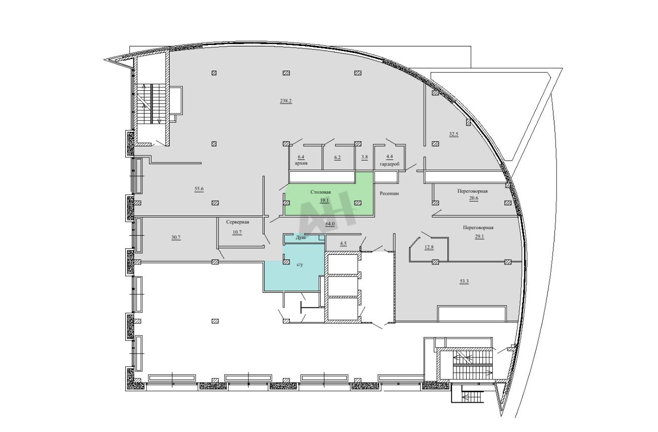 Лот №936534 Сдается офисное помещение площадью 618 кв.м на шестом этаже. Планировка смешанная и включает холл с ресепшен, открытое пространство, столовую для сотрудников, отдельные кабинеты, серверную комнату и помещение под архив. Объект расположен в многофункциональном комплексе на севере Москвы в шаговой доступности от станции метро «Свиблово». Здание отличается яркой архитектурой и объединяет офисную башню с районным торговым центром, где представлены галерея, рестораны и якорные арендаторы. Помещение полностью обеспечено централизованными коммуникациями, современными системами вентиляции и кондиционирования, охранно-пожарной сигнализацией, системами дымоудаления и пожаротушения, а также полным комплектом телекоммуникаций. Для арендаторов доступна наземная бесплатная парковка на 50 машино-мест. Также имеется возможность размещения на подземном паркинге по стоимости 15 000 рублей за одно машино-место. Стоимость аренды: 36 000 руб/м2/год (1 854 000 руб. в месяц). В цену включено: эксплуатационные расходы. В цену не включено: затраты на электричество, коммунальные расходы, уборка.