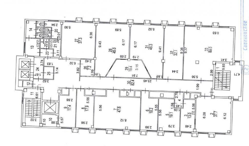 Лот №974059 Аренда офиса кабинетной планировки 1300м2 в СЗАО в деловой центр класса B "Диапазон". Ближайшее метро\МЦД Октябрьское поле\Панфиловская до 10 минут пешком. Деловой центр "Диапазон" это 46000 м² офисных и сопутствующих площадей на нескольких гектарах территории. Современные инженерные системы — приточно-вытяжная вентиляция, центральное кондиционирование, система пожарной безопасности. Профессиональная управляющая компания - центральный ресепшн, круглосуточная охрана, системы видеонаблюдения и пропуска. Развитая инфраструктура - не выходя из делового центра доступны кафе - Prime Cafe, столовая — Жираф, мини-маркет, салон красоты, банкомат, фитнес. Предлагаемое помещение занимает 8 и 9 этажи целиком. Планировка кабинетная - порядка 20 кабинетов различной площади, подсобные помещения, с\у, мини кухня, зона ресепшен. Высота потолков 3+ метра. Видовой этаж. Возможна аренда машиномест на территории БЦ. Звоните, показ в удобное время по предварительной договоренности. Стоимость аренды: 31 200 руб/м2/год (3 380 000 руб. в месяц). В цену включено: эксплуатационные расходы.