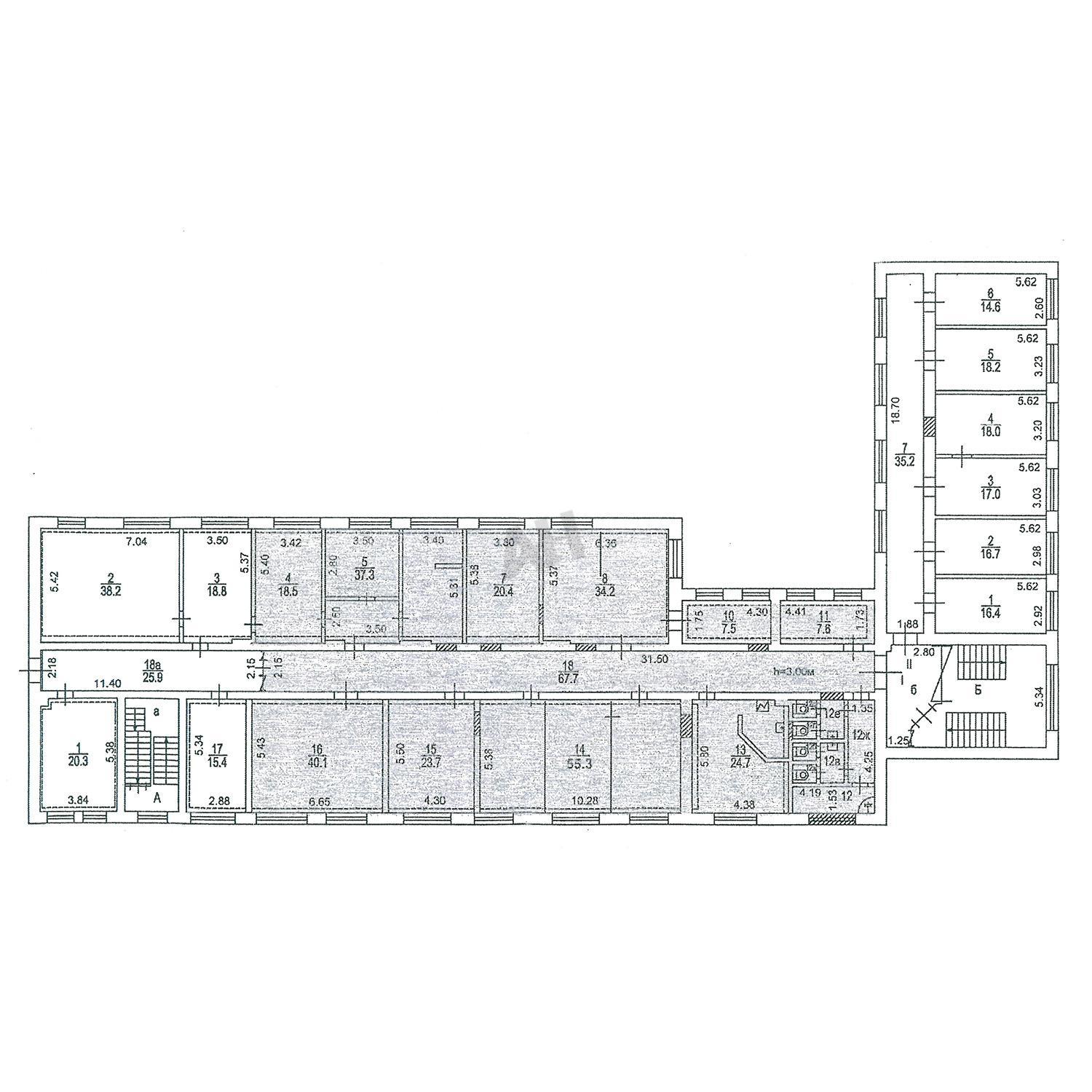 Лот №974096 Предлагается к сдаче в прямую аренду офисное помещение, состоящее из двух функциональных блоков. Первый блок площадью 136,1 кв. м полностью готов к въезду и эксплуатации. Второй блок площадью 360,6 кв. м находится в состоянии капитального ремонта, который будет завершен до 1 марта 2026 года. Блок включает в себя 18 светлых комнат, оборудованных кондиционерами, просторный коридор, кухню, санузел, зону ресепшена и серверную. Высота потолков составляет 3 метра, отделка стен — обои под покраску, установлены окна ПВХ и металлическая входная дверь. Для обеспечения безопасности и контроля доступа в здании функционирует система СКУД и домофон. На прилегающей территории имеется парковка, с возможностью предоставления 7 фиксированных мест для арендаторов. Помещение оснащено пожарной сигнализацией. Отдельно стоит отметить, что в здании отсутствует лифт. Санузел расположен в ремонтируемом блоке площадью 360,6 кв. м. На фото- актуальные фото до начала ремонта Стоимость аренды: 29 167 руб/м2/год (1 207 271 руб. в месяц), НДС оплачивается дополнительно. В цену включено: эксплуатационные расходы.