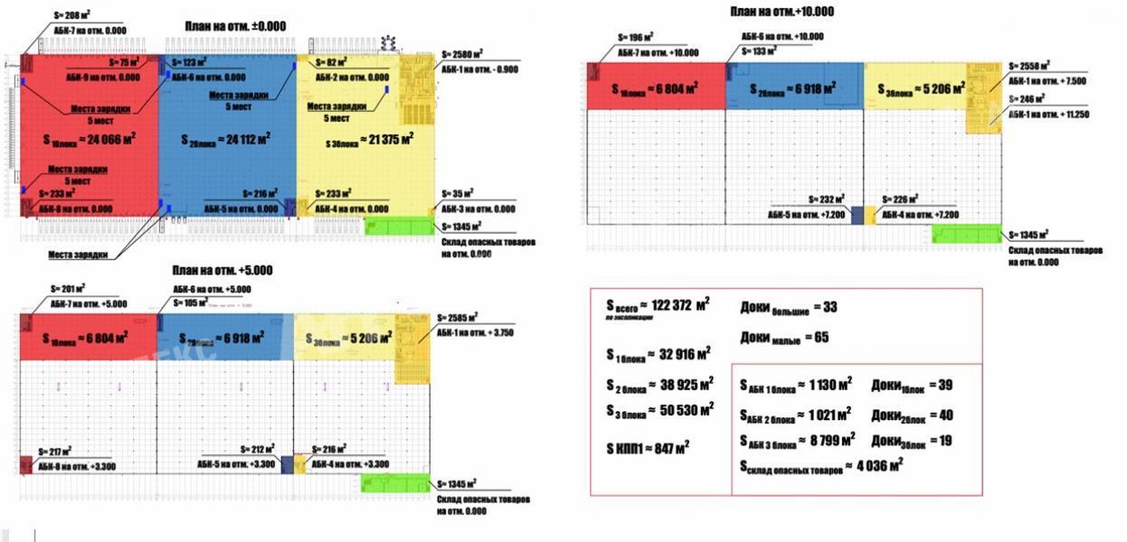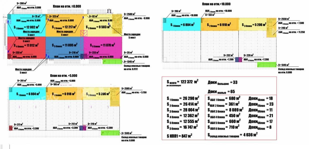 Лот №996281 Предлагаются в аренду блоки в производственно-складском комплексе класса «А», расположенном в логистическом центре «Обухово» на Горьковском шоссе в 29 км от МКАД. Земельный участок объекта составляет 170 000 м². Здание имеет габариты 434х169 м с шагом колонн 12х12 м и высотой до низа конструкций 13 метров. Каркас выполнен из железобетонных колонн и металлоконструкций, фундамент — свайный. Полы на складе и антресолях представляют собой бетонную плиту с упрочнённым верхним слоем на корундовой основе, обладают антипылевым покрытием и рассчитаны на нагрузку до 8 000 кг/м². Уровень пола 1.2м. Отдельно выделены зоны с допустимой нагрузкой 6 000 кг/м² для опасных товаров, 600 кг/м² для серверной и 250 кг/м² для офисных помещений. Все коммуникации. Инфраструктура объекта включает 98 доков для погрузки, 35 зарядных зон для электропогрузчиков и электрическую мощность 4.2 МВт. Площадь контрольно-пропускных пунктов составляет 920 м². Для размещения транспорта предусмотрена парковка на 112 машино-мест для большегрузных и 350 для легковых автомобилей. Система пожаротушения: Спринклерная, Автоматическая система пожарной безопасности. Кровля здания — плоская, неэксплуатируемая. Аренда (от 2х лет). Коммунальные услуги: по счётчикам. Помещение подходит для широкого спектра применений, включая такие профили: Склад, Фулфилмент, Склад для маркетплейсов, Хранение, Переупаковка, Комплектация, Фасовка, Производство, Логистический терминал, Распределительный центр, Склад для грузов, Кросс-докинг, Сборка изделий, комплектующих, Дооснащение продукции, Монтаж / демонтаж оборудования, Тестирование и проверка работоспособности техники, Ремонт и сервисное обслуживание на складе, Перемаркировка и ретейлинг упаковки и другие. Актуальные площади и цены (м2):